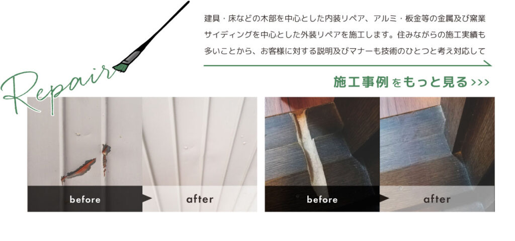 少人数だからできること...代表を含めた腕利きの職人が、お客様の些細なお困り事に丁寧に寄り添い、補修させていただきます。